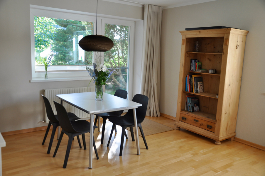 Der Wohn- und Essbereich bietet einen atemberaubenden Blick auf die Berge und einen mit Liebe angelegten Garten
