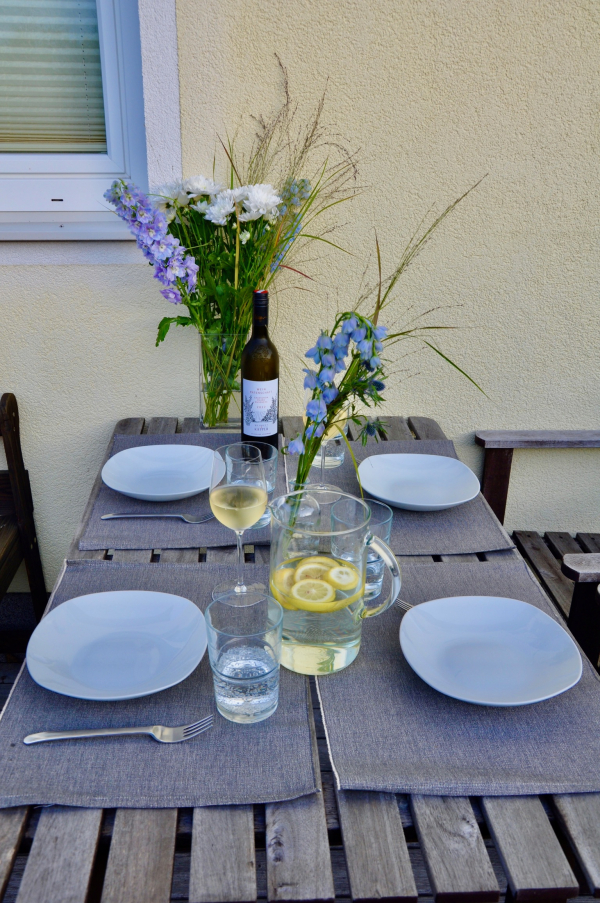 Ein eigener Gartenbereich ausgestattet mit Sitzmöbeln bietet Entspannung im Grünen.