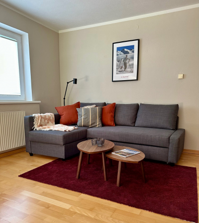 Bei Bedarf kann das Sofa im Wohnzimmer in einen zusätzlichen Schlafplatz umgewandelt werden.